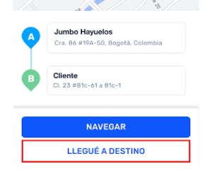 Una vez llegues a la dirección del cliente, marca LLEGUÉ AL DESTINO, así el cliente recibirá una notificación sobre tu llegada.