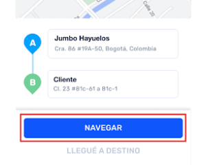Antes de salir de tienda da clic en NAVEGAR. Así marcas tu salida de tienda y notificamos al cliente que su pedido va en ruta.